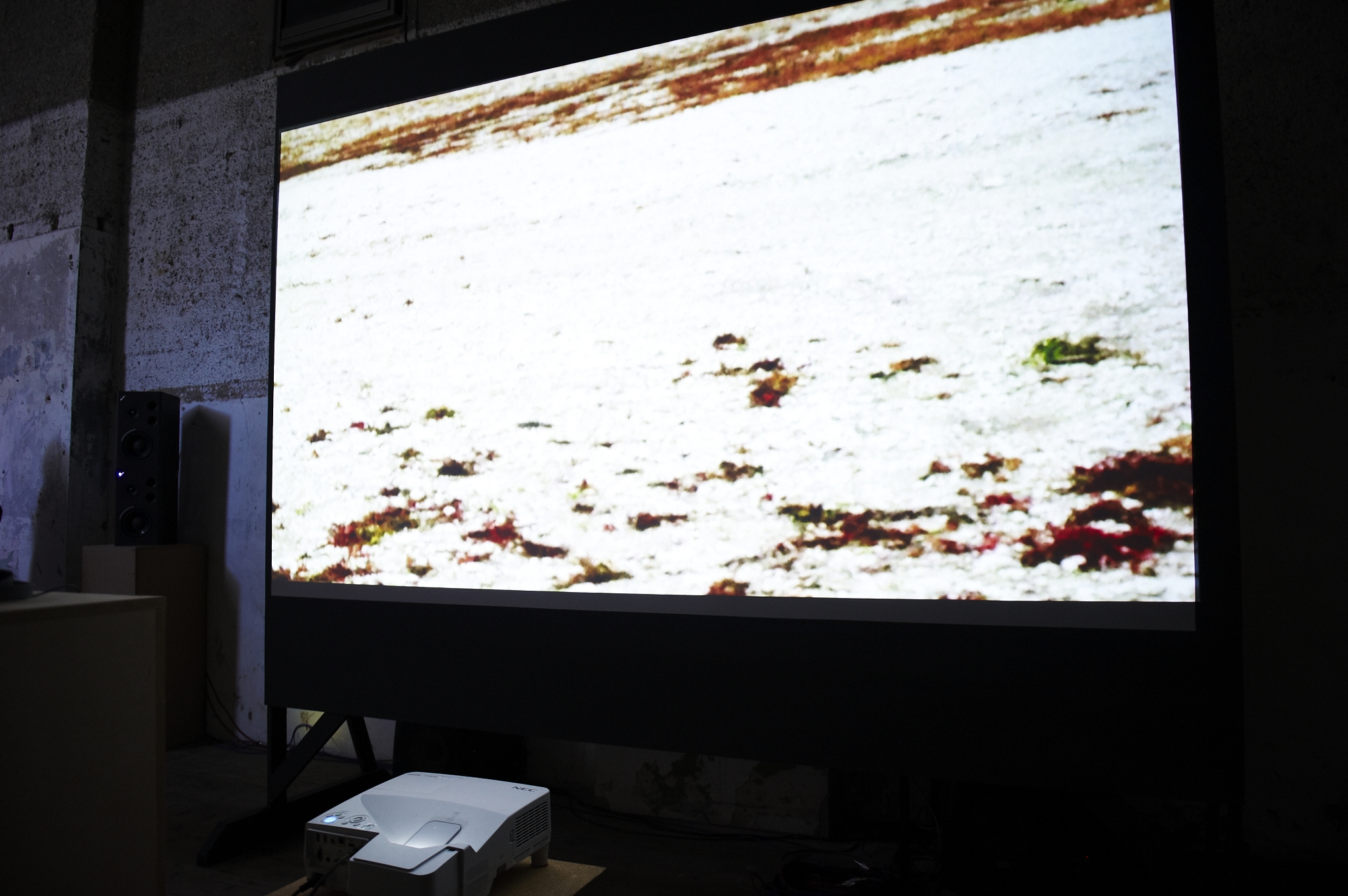 Emerged on the collective exhibition Daily Concerns, my work Sonorous Echo plays on a “cinematic” sound installation, drawing on the immersive and personal through the soundtrack of a film; the ‘never heard’ within the post -production end game of film/sound design. Generating disruptions between the visual and the auditory and their political balances, the work is not only a rebellion against the hierarchy of the linear structure of film production, but also an attempt to propose a “demilitarising” mode of listening that projects and rejects the inducible, and offers opportunities for each listener to generate their own perspective and sonically criticise the world trough an auditory subjectivity. Listen to the place, what remains and what is lost over the action?